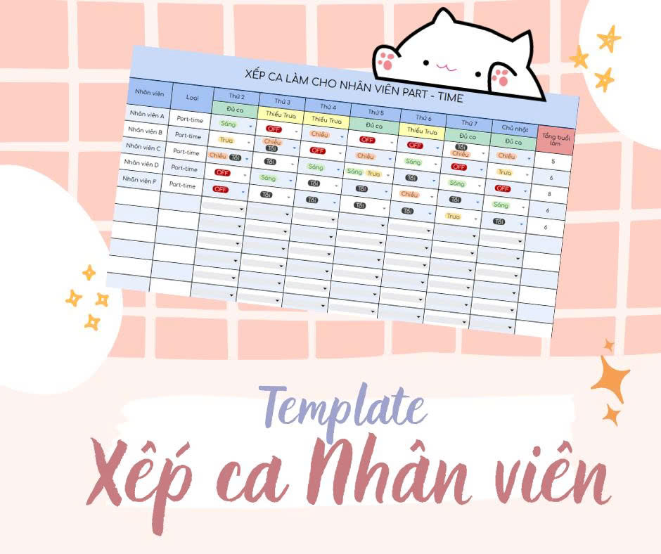 Sở hữu ngay Bảng chấm công – tính lương tự động dành cho nhân viên làm theo ca. Với thiết kế trực quan, tự động tính giờ và lương chỉ bằng một cú click, bảng giúp bạn tiết kiệm hàng giờ xử lý, đảm bảo minh bạch và chính xác tuyệt đối. Phù hợp cho quán ăn, cửa hàng, công ty dịch vụ – chỉ cần tick là xong!